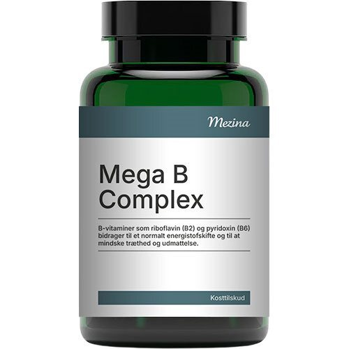 B-Complex indeholder bl.a. vitamin C, thiamin og biotin, som bidrager til at vedligeholde et normalt energistofskifte. Niacin, pantothensyre, riboflavin, folsyre, vitamin B6 og vitamin B12 bidrager til at mindske træthed og udmattelse.
