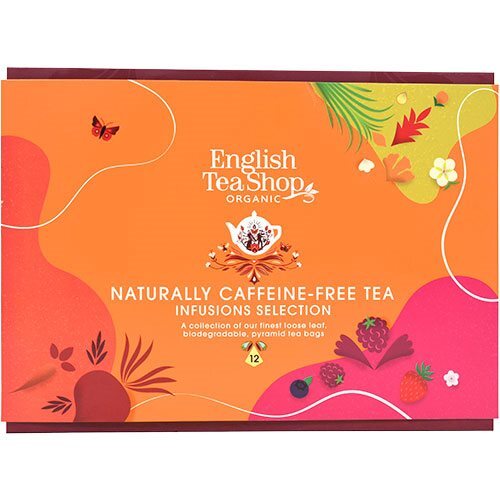 Gaveæske med økologisk koffeinfri te. Pakken indeholder12 breve (6x2 stk).